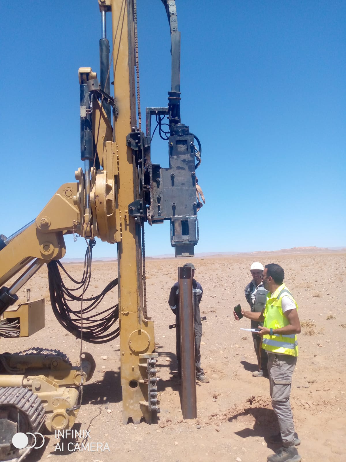 notre role est de Installation et le contrôle qualité des travaux de mise en place d'une large gamme de pieux métalliques de structures photovoltaïques.