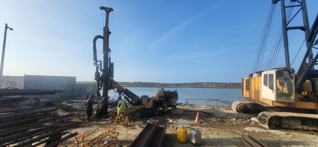 I-Ecran de deux files de micropieux pieux de 300mm de longueurs 14m. a un double objectif celui de soutènement des terrains et celui de l’étanchéité pour éviter le départ des matériaux fins des terres pleins vers la mer.